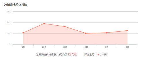 冰箱清洗的費(fèi)用一般在80-300元不等,具體與冰箱的規(guī)格和清洗難度有關(guān),下面會(huì)冰箱清洗價(jià)格波動(dòng)圖,可供參考: