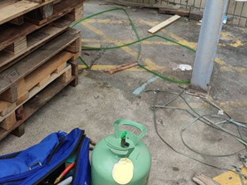 空調(diào)正常發(fā)動后,從室外機低壓閥側(cè)的工藝口銜接加氟設(shè)備。此過程中一定要排掉加氟管中的空氣和臟物。