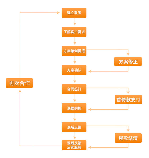 5、全流程服務(wù)模式--全程無憂:翼學(xué)拓展根據(jù)客戶的需求不同,制定全程個(gè)性的拓展培訓(xùn)服務(wù)。從客戶需求開始,為客戶提供專業(yè)的咨詢顧問,方案設(shè)計(jì)、后勤執(zhí)行到服務(wù)跟蹤等一系列的一對(duì)一貼心服務(wù),一切以方便客戶為先,全流程服務(wù)讓客戶安心放心。