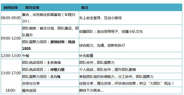 翼學(xué)拓展一天行程安排: