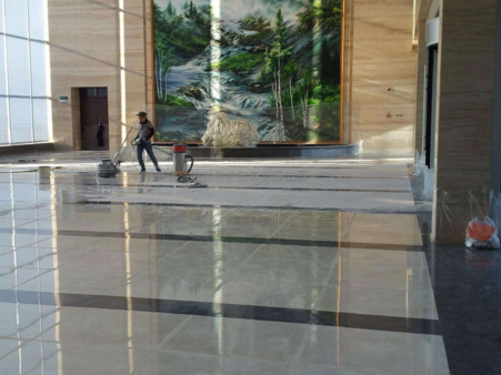 3、研磨拋光:由粗到細使用專用石材水磨片對石材進行研磨,致使地面光滑平整。