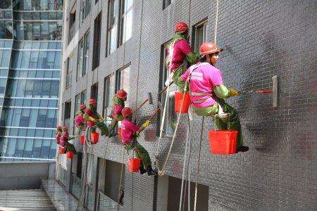 外墻清潔不許要在良好的氣候條件下進行,風力應小于4級。4級以上停止工作。另外,下雨、有霧能見度差以及高溫(38℃以上)和低溫(0℃以下)等條件下都不適合外墻清洗。