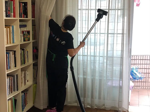 洗花邊窗簾:這種窗簾帶了一個(gè)花邊清洗起來就比較麻煩了,我們可以先用吸塵器將窗簾清洗一遍,然后用一個(gè)小棍子輕輕拍打花邊,這樣就能夠很容易的清理干凈這種窗簾。