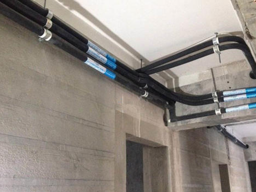 3、安裝供回水管,冷凝水管、信號線等,鋪設(shè)的冷凝水管要保持至少1/100的坡度,這樣既能不影響裝潢效果,又保證其正常排放。冷媒管安裝時切割面應(yīng)銼平,去除內(nèi)、外毛刺,套接應(yīng)緊密,焊接時冷媒管外表面應(yīng)清潔。在焊接時必須在銅管內(nèi)沖入氮氣,焊接完成后應(yīng)該用高壓氮氣在管內(nèi)進行吹灰,保持銅管內(nèi)的清潔度。