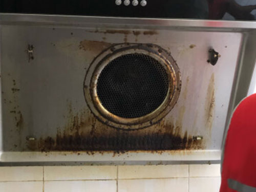 4、油污長期積累在油煙機內(nèi)部和煙道內(nèi)部,還將形成火災隱患。