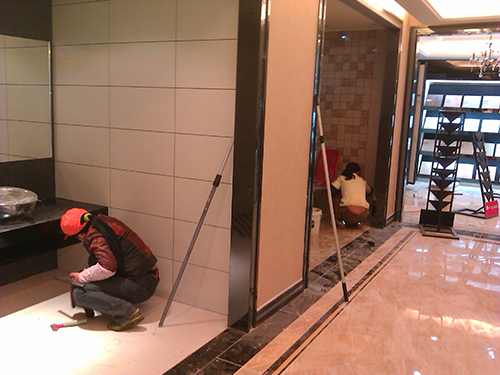一、衛(wèi)生間開荒保潔:堅(jiān)持由上而下的原則,首先認(rèn)清衛(wèi)生間頂子的材質(zhì),是pvc的或是鋁塑板還是涂料的,再根據(jù)不同的材質(zhì)用不同的清潔方法進(jìn)行清潔;用清潔球或是板刷清洗衛(wèi)生間的墻壁,著重瓷磚的縫隙,和瓷磚表面上遺留的膠跡、涂料點(diǎn)、水泥漬等;用毛巾清潔衛(wèi)生間的潔具,用不銹鋼清洗液針對(duì)各種龍頭、管件進(jìn)行清潔。